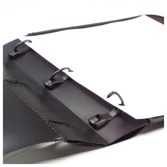 Тетрадь с 3 кольцами, со сменными блоками. Верхняя обложка прозрачная, на на нижней обложке имеется карман для визитниц.
